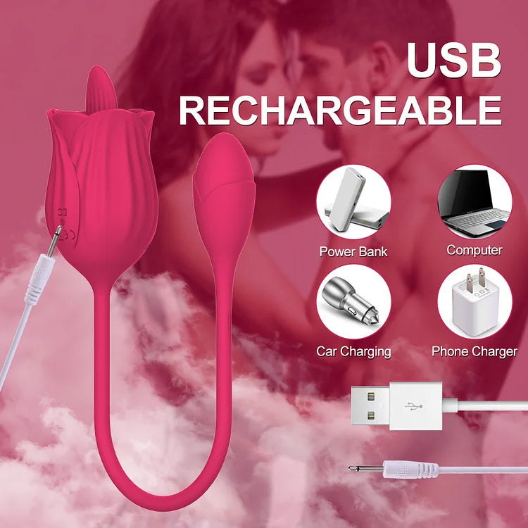Rose Jumping Egg Vibrating Licking Tongue Double Headed For Woman