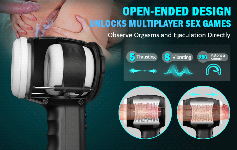 This masturbation cup designed for everyone to use. Hair dryer appearance with strong concealment avoids the embarrassment of being discovered by others. Open channel with high elasticity and soft inner sleeve suits for any penis size to enjoy full wrapping. You can enjoy solo play from glans jerking to root stimulation, and can also enjoy the pleasure of two glans bump each other as you both simultaneously penetrate the penis through male masturator's holes, satisfying your desire for new sexual stimulation. 8 vibrating 5 thrusting, deep throat swallowing 5.04 in, one minute can complete 280 piston stimulation, whether you're a veteran or a novice, it will keep you orgasm constantly. The open channel can also satisfy your voyeuristic desire to observe the penis swell and expand under the massage of the sex toy to reach a climax.